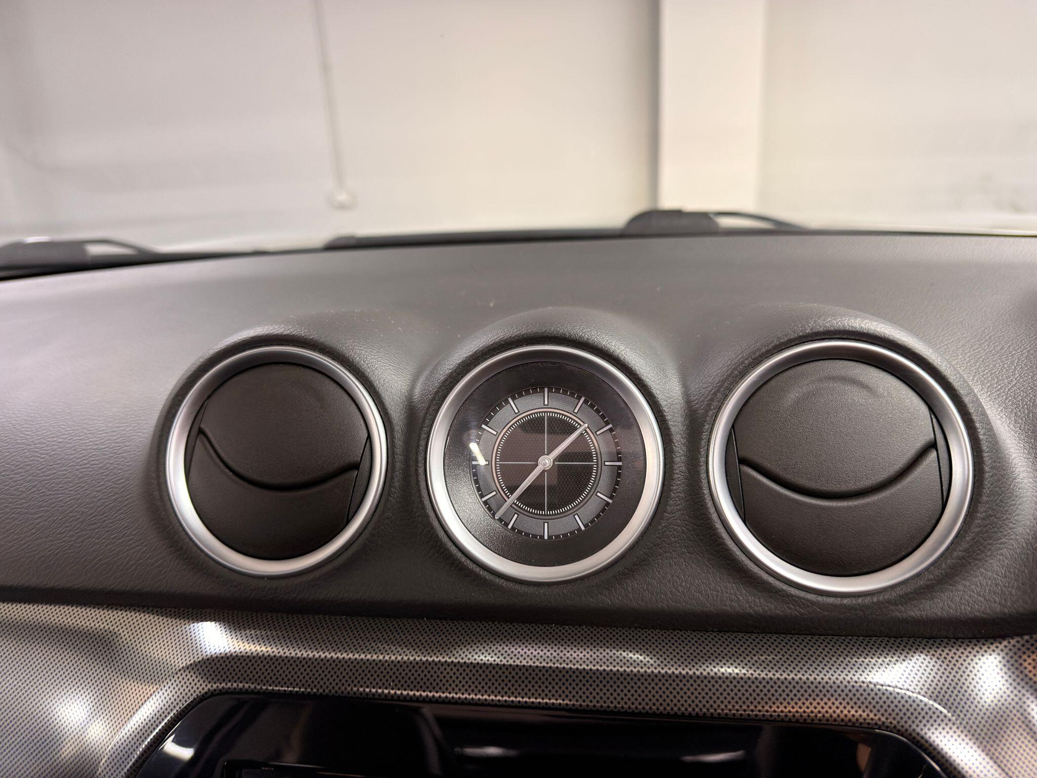 Finished in Silky Silver Metallic with black half leather/suede upholstery with chrome/silver fascia trim and cappings.